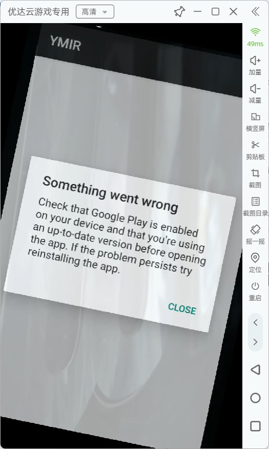 问题解答:如若【未安装】谷歌三件套 请前往云手机桌面的拓展服务内安装谷歌三件套后重新打开游戏。如若【已安装】谷歌三件套 请先将游戏以及游戏更新器卸载后重新安装即可(游戏更新器可到下载中心安装)。
