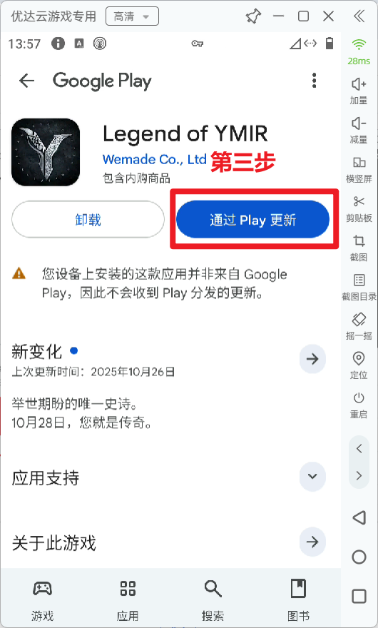 问题解答:根据提示前往谷歌商店更新,更新完成后 开始游戏即可。